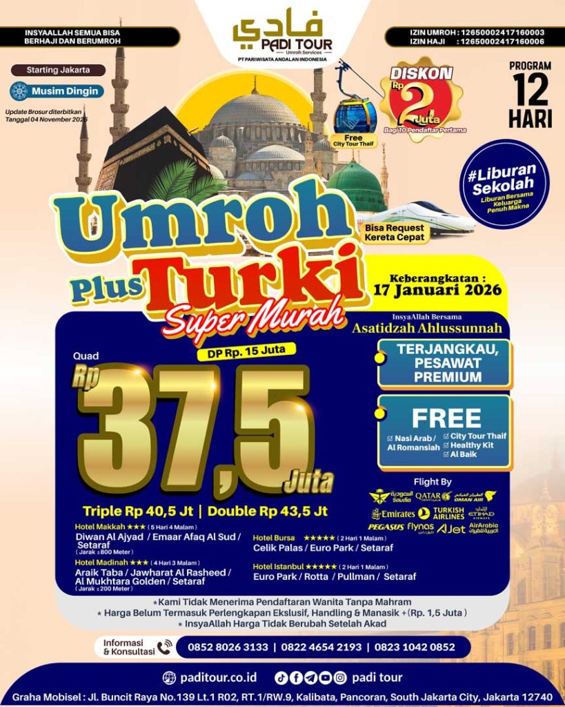 17 Januari 2026 (Umroh Plus Turkey ASYIK)