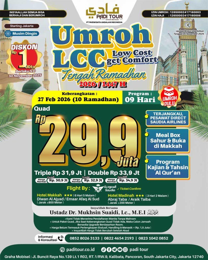 27 Februari 2026 (Umroh LCC) Tengah Ramadhan